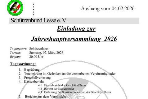 Hier kannst Du unsere Aktivitäten und Termine rund um den Schützenbund Lesse sehen.