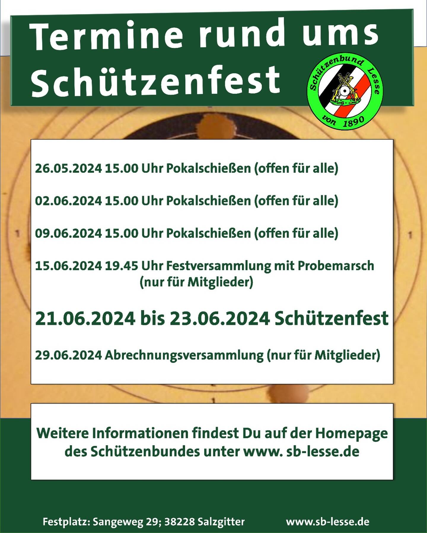 Es ist wieder soweit, unser Schützenfest steht vor der Tür! Hier sind die wichtigsten Termine für euch im Überblick ☺️ #SchützenbundLesse #SBLesse #schießsport #schützenverein #salzgitter #lesse #salzgitterlesse