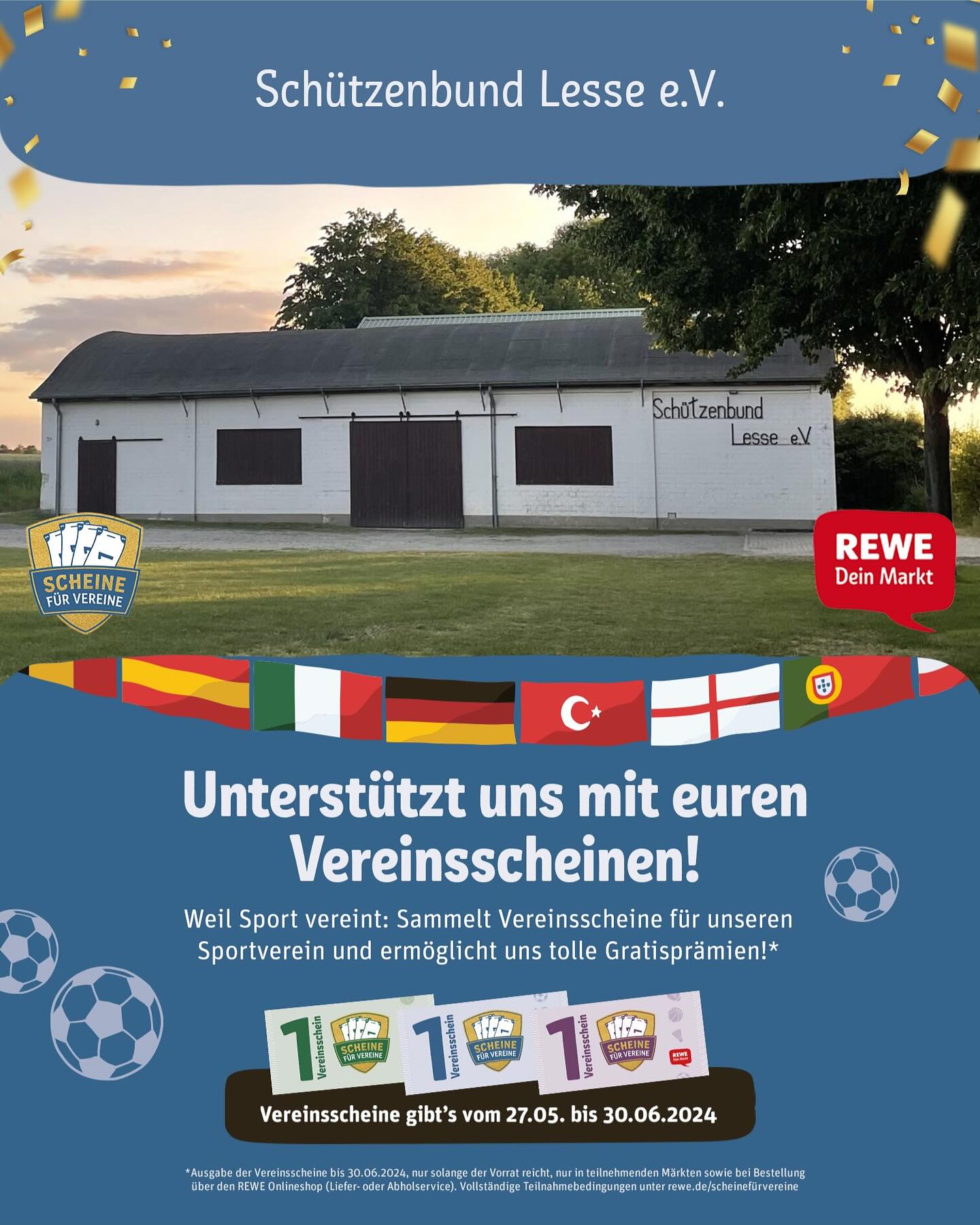 In jedem teilnehmenden Rewe gibt es wieder die Vereinsscheine. Ihr kennt das Spiel, wenn ihr uns unterstützen wollt dann löst doch gerne die Scheine für den Schützenbund Lesse ein. Vielen Dank! 🤩